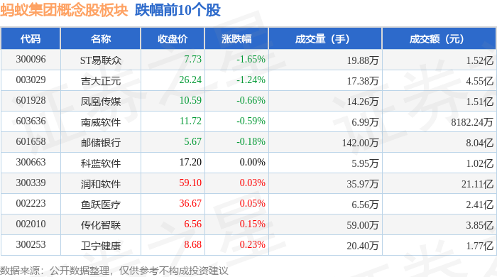 从资金流向上来看,当日蚂蚁集团概念股板块主力资金净流入4.64亿元,游资资金净流出2.42亿元,散户资金净流出2.22亿元。蚂蚁集团概念股板块个股资金流向见下表: