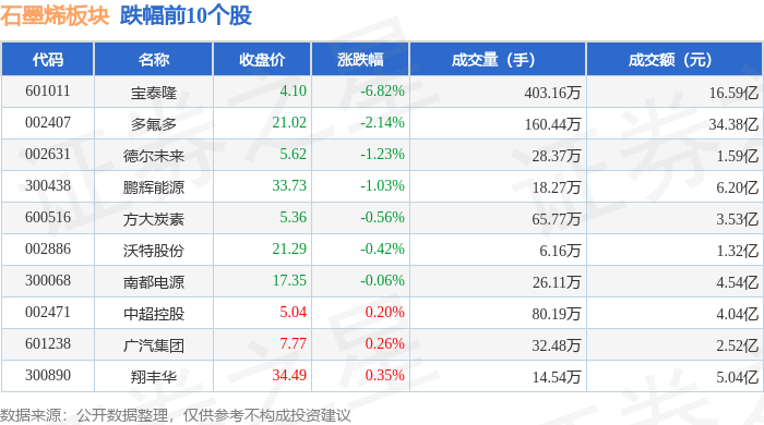 从资金流向上来看,当日石墨烯板块主力资金净流入2.24亿元,游资资金净流出4.99亿元,散户资金净流入2.75亿元。石墨烯板块个股资金流向见下表:
