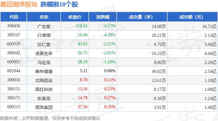 证券之星消息,10月21日基因测序板块较上一交易日上涨1.12%,华大智造领涨。当日上证指数报收于3916.33,上涨1.36%。深证成指报收于13077.32,上涨2.06%。基因测序板块个股涨跌见下表: