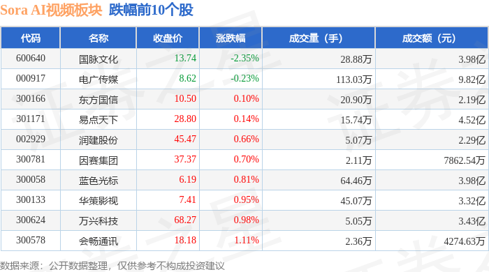 从资金流向上来看,当日Sora AI视频板块主力资金净流入9642.67万元,游资资金净流出4376.61万元,散户资金净流出5266.06万元。Sora AI视频板块个股资金流向见下表: