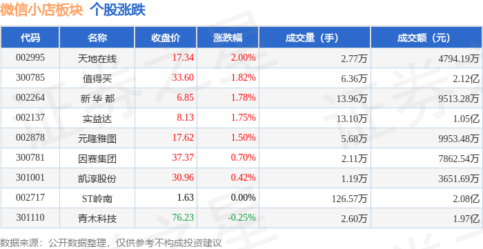 证券之星消息,10月21日微信小店板块较上一交易日上涨1.06%,天地在线领涨。当日上证指数报收于3916.33,上涨1.36%。深证成指报收于13077.32,上涨2.06%。微信小店板块个股涨跌见下表: