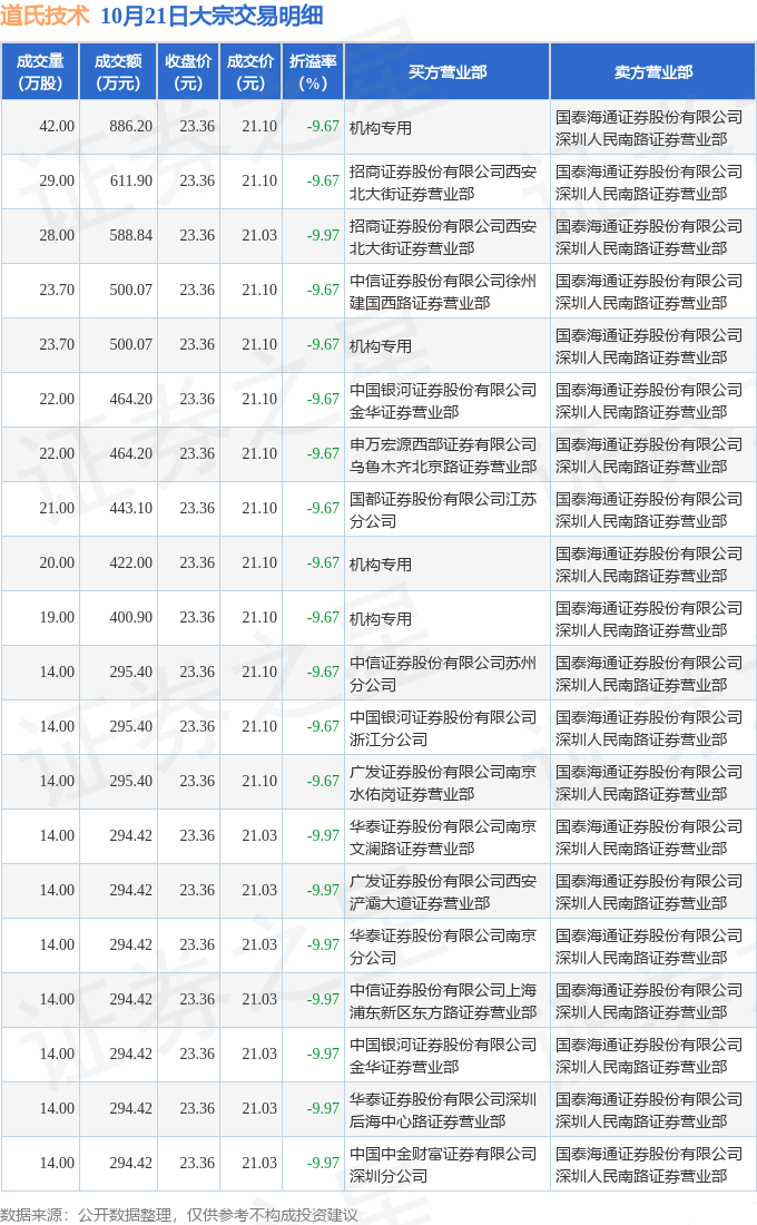 证券之星消息,10月21日道氏技术发生大宗交易,交易数据如下: