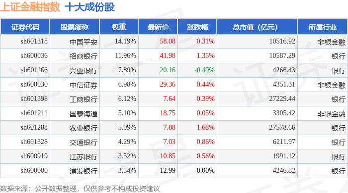 上证金融(000038)指数十大成份股详情如下: