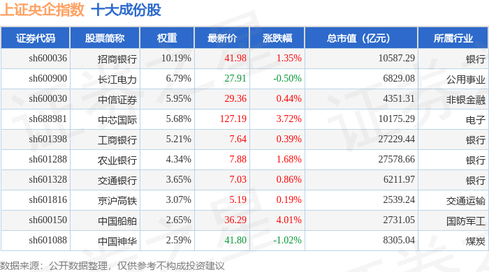 证券之星消息,10月21日,上证央企(000042)指数报收于1822.79点,涨0.86%,成交856.33亿元,换手率0.34%。当日该指数成份股中,上涨的有33家,中国船舶以4.01%的涨幅领涨,下跌的有13家,中国移动以1.54%的跌幅领跌。