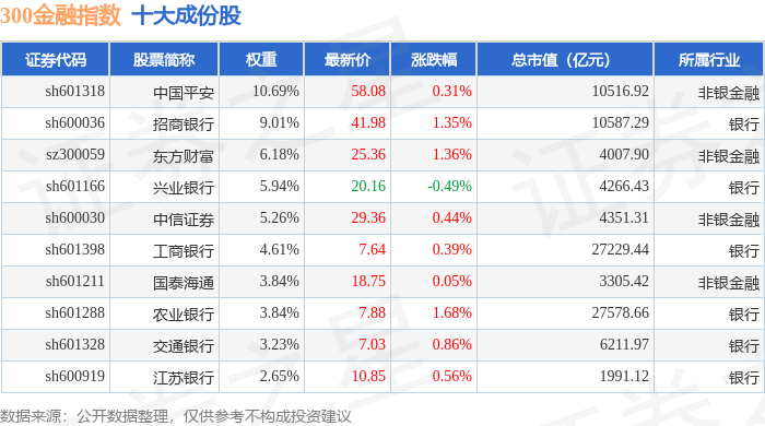 300金融(000914)指数十大成份股详情如下: