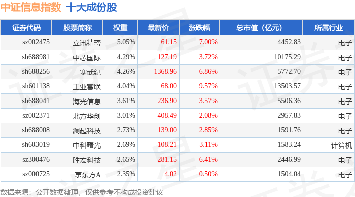 证券之星消息,10月21日,中证信息(000935)指数报收于6499.53点,涨3.3%,成交2829.07亿元,换手率2.31%。当日该指数成份股中,上涨的有120家,环旭电子以10.03%的涨幅领涨,下跌的有8家,斯达半导以1.5%的跌幅领跌。