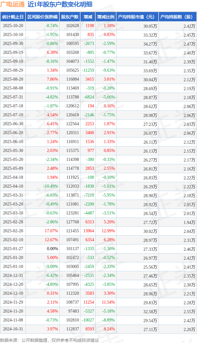从股价来看,2025年10月10日至2025年10月20日,广电运通区间跌幅为8.74%,在此期间股东户数增加1198.0户,增幅为1.18%。