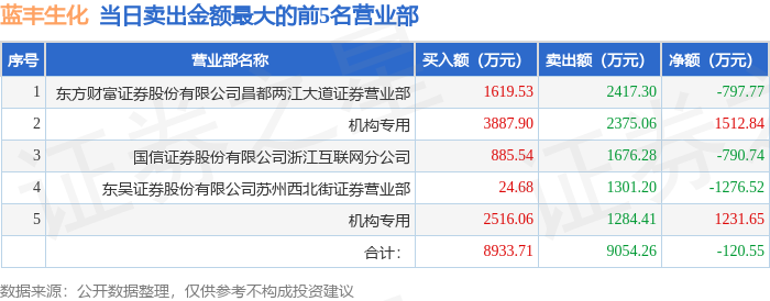 证券之星消息,沪深交易所2025年10月21日公布的交易公开信息显示,蓝丰生化(002513)因日换手率达到20%的前5只证券登上龙虎榜。此次是近5个交易日内第5次上榜。