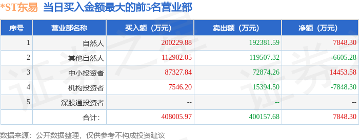 证券之星消息,沪深交易所2025年10月21日公布的交易公开信息显示,*ST东易(002713)因连续三个交易日内,涨幅偏离值累计达到12%的ST证券、*ST证券和未完成股改证券,严重异常期间4次出现正向异常波动的证券登上龙虎榜。此次是近5个交易日内第2次上榜。