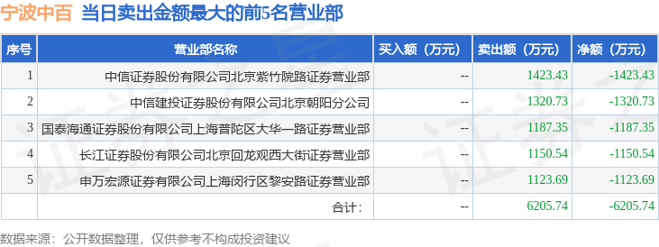 证券之星消息,沪深交易所2025年10月21日公布的交易公开信息显示,宁波中百(600857)因有价格涨跌幅限制的日收盘价格跌幅偏离值达到7%的前五只证券登上龙虎榜。此次是近5个交易日内第1次上榜。