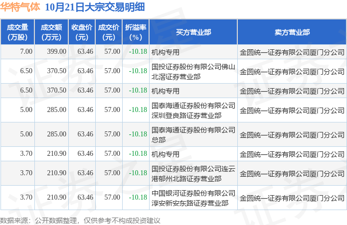 证券之星消息,10月21日华特气体发生大宗交易,交易数据如下:
