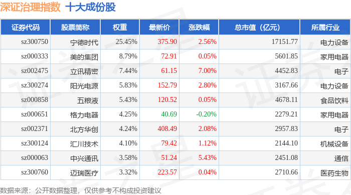 证券之星消息,10月21日,深证治理(399328)指数报收于11042.38点,涨1.92%,成交1021.6亿元,换手率1.56%。当日该指数成份股中,上涨的有28家,视源股份以8.14%的涨幅领涨,下跌的有11家,长春高新以0.69%的跌幅领跌。