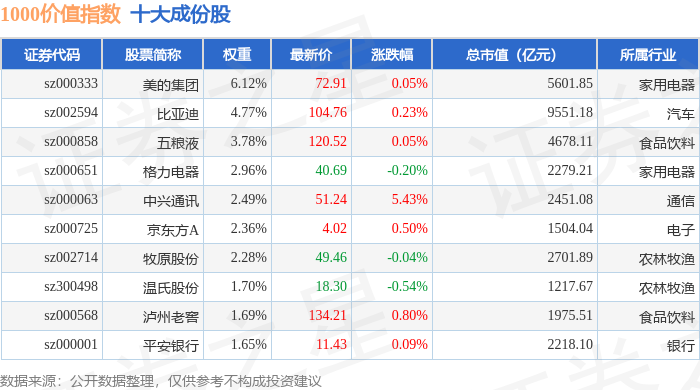 证券之星消息,10月21日,1000价值(399631)指数报收于2231.24点,涨1.0%,成交1373.95亿元,换手率1.37%。当日该指数成份股中,上涨的有272家,农产品以10.0%的涨幅领涨,下跌的有54家,中山公用以4.23%的跌幅领跌。
