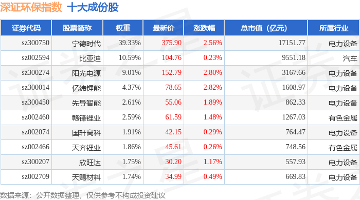 深证环保(399638)指数十大成份股详情如下: