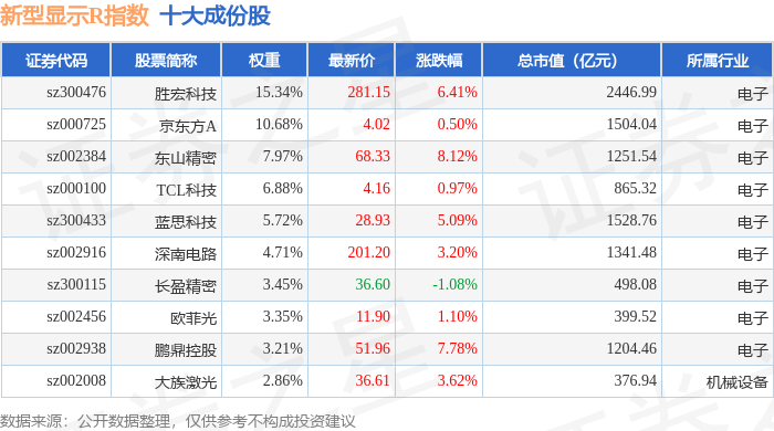 新型显示R(470048)指数十大成份股详情如下: