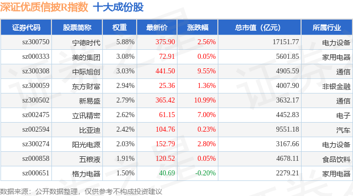深证优质信披R(470065)指数十大成份股详情如下: