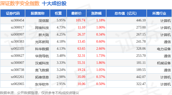 深证数字安全(970052)指数十大成份股详情如下: