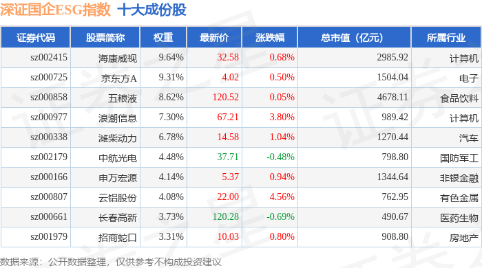 深证国企ESG(970055)指数十大成份股详情如下: