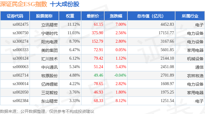深证民企ESG(970056)指数十大成份股详情如下: