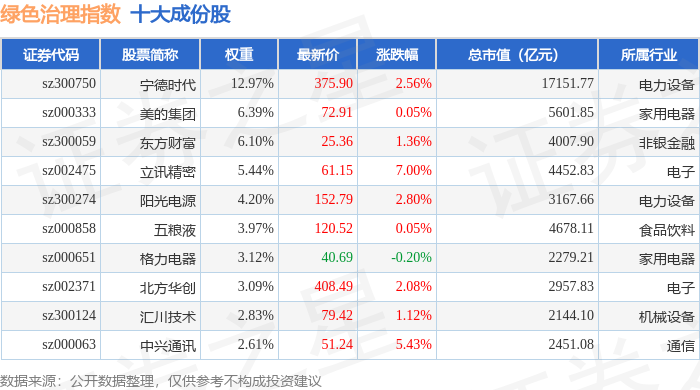 资金流向方面,绿色治理(980058)指数成份股当日主力资金净流入合计52.05亿元,游资资金净流出合计23.11亿元,散户资金净流出合计28.94亿元。成份股资金流向详情见下表: