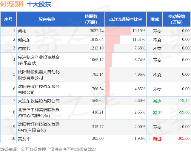 根据何氏眼科2025年中报公布的十大股东详情如下: