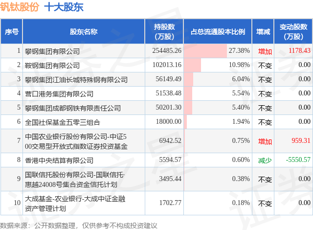 根据钒钛股份2025年中报公布的十大股东详情如下: