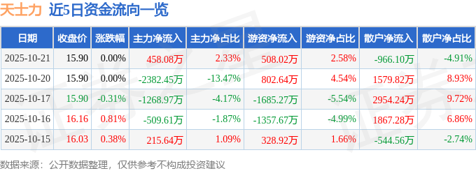 10月21日的资金流向数据方面,主力资金净流入458.08万元,占总成交额2.33%,游资资金净流入508.02万元,占总成交额2.58%,散户资金净流出966.1万元,占总成交额4.91%。
