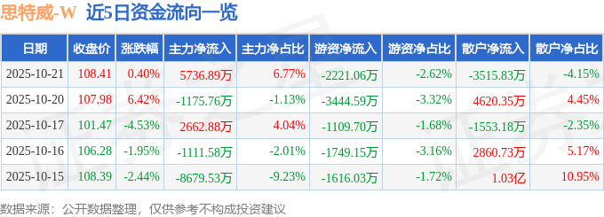 10月21日的资金流向数据方面,主力资金净流入5736.89万元,占总成交额6.77%,游资资金净流出2221.06万元,占总成交额2.62%,散户资金净流出3515.83万元,占总成交额4.15%。