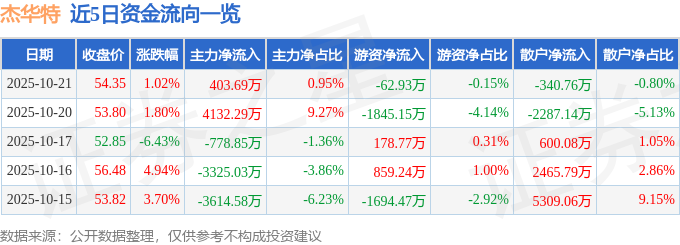 证券之星消息,截至2025年10月21日收盘,杰华特(688141)报收于54.35元,上涨1.02%,换手率2.93%,成交量7.83万手,成交额4.26亿元。