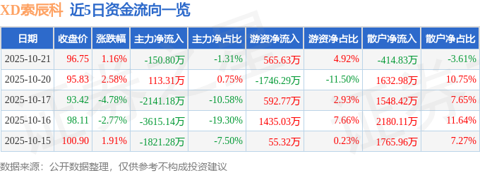 证券之星消息,截至2025年10月21日收盘,XD索辰科(688507)报收于96.75元,上涨1.16%,换手率2.43%,成交量1.2万手,成交额1.15亿元。