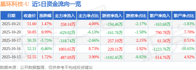 证券之星消息,截至2025年10月21日收盘,星环科技(688031)报收于51.6元,上涨1.47%,换手率1.86%,成交量1.74万手,成交额8945.34万元。