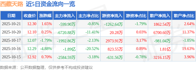 10月21日的资金流向数据方面,主力资金净流出599.9万元,占总成交额0.85%,游资资金净流出1262.64万元,占总成交额1.79%,散户资金净流入1862.54万元,占总成交额2.64%。