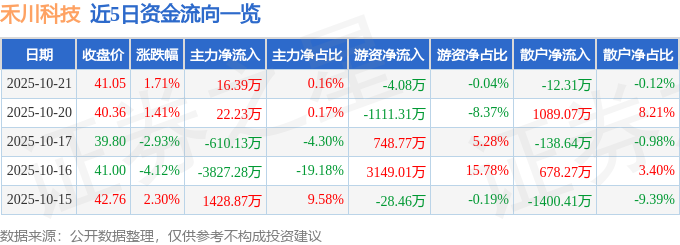 证券之星消息,截至2025年10月21日收盘,禾川科技(688320)报收于41.05元,上涨1.71%,换手率2.33%,成交量2.58万手,成交额1.06亿元。