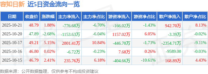 证券之星消息,截至2025年10月21日收盘,容知日新(688768)报收于48.79元,上涨1.88%,换手率2.72%,成交量2.37万手,成交额1.16亿元。
