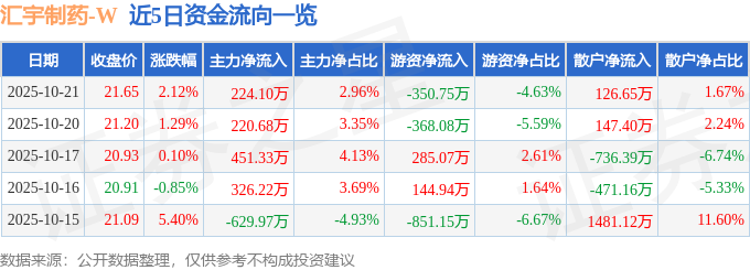 证券之星消息,截至2025年10月21日收盘,汇宇制药(688553)报收于21.65元,上涨2.12%,换手率1.02%,成交量3.52万手,成交额7582.29万元。