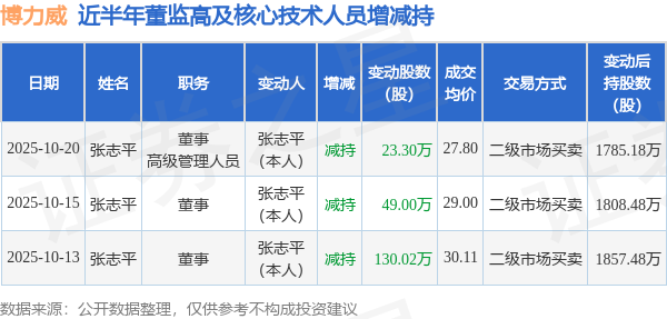 博力威近半年内的董监高及核心技术人员增减持详情如下: