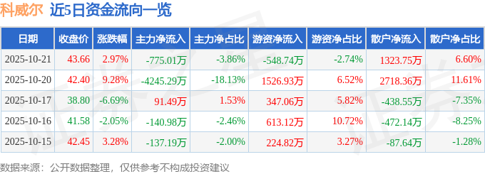 证券之星消息,截至2025年10月21日收盘,科威尔(688551)报收于43.66元,上涨2.97%,换手率5.43%,成交量4.57万手,成交额2.01亿元。