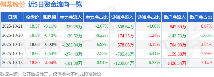 10月21日的资金流向数据方面,主力资金净流出339.25万元,占总成交额2.67%,游资资金净流出508.64万元,占总成交额4.0%,散户资金净流入847.89万元,占总成交额6.67%。