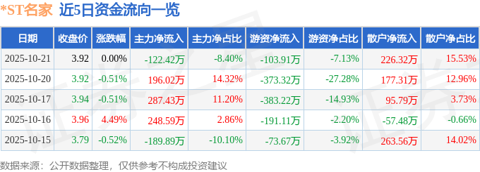 证券之星消息,截至2025年10月21日收盘,*ST名家(300506)报收于3.92元,上涨0.0%,换手率0.57%,成交量3.72万手,成交额1457.02万元。