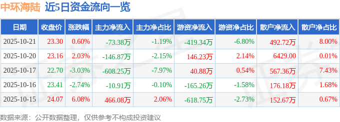 证券之星消息,截至2025年10月21日收盘,中环海陆(301040)报收于23.3元,上涨0.6%,换手率2.82%,成交量2.65万手,成交额6162.34万元。