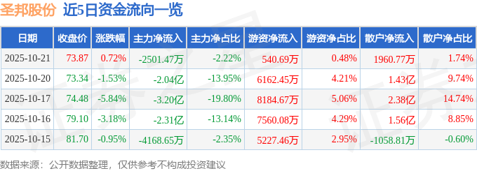 证券之星消息,截至2025年10月21日收盘,圣邦股份(300661)报收于73.87元,上涨0.72%,换手率2.58%,成交量15.28万手,成交额11.29亿元。