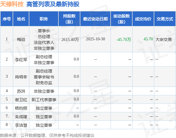 天禄科技近半年内的董监高及核心技术人员增减持详情如下: