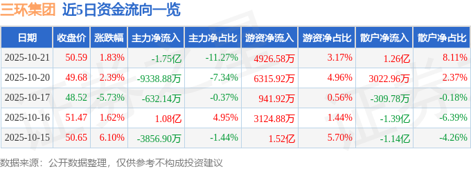 10月21日的资金流向数据方面,主力资金净流出1.75亿元,占总成交额11.27%,游资资金净流入4926.58万元,占总成交额3.17%,散户资金净流入1.26亿元,占总成交额8.11%。