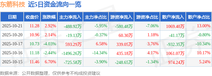 证券之星消息,截至2025年10月21日收盘,东箭科技(300978)报收于11.28元,上涨2.92%,换手率3.83%,成交量7.33万手,成交额8223.29万元。