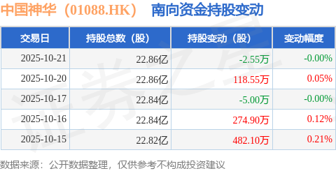证券之星消息,10月21日南向资金减持2.55万股中国神华(01088.HK)。近5个交易日中,获南向资金增持的有3天,累计净增持868.0万股。近20个交易日中,获南向资金减持的有14天,累计净减持1531.27万股。截至目前,南向资金持有中国神华(01088.HK)22.86亿股,占公司已发行普通股的67.66%。