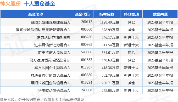 持有神火股份最多的基金为景顺长城能源基建混合A,目前规模为22.71亿元,最新净值2.909(10月21日),较上一交易日上涨0.38%,近一年上涨16.95%。该基金现任基金经理为邹立虎。