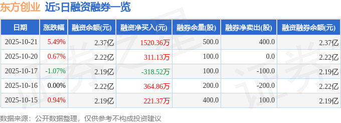 东方创业融资融券信息显示,融资方面,当日融资买入3901.33万元,融资偿还2380.97万元,融资净买入1520.36万元。融券方面,融券卖出400.0股,融券偿还0.0股,融券余量500.0股,融券余额0.39万元。融资融券余额2.37亿元。