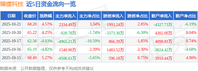 10月21日的资金流向数据方面,主力资金净流入2334.49万元,占总成交额3.34%,游资资金净流入1993.24万元,占总成交额2.85%,散户资金净流出4327.73万元,占总成交额6.19%。