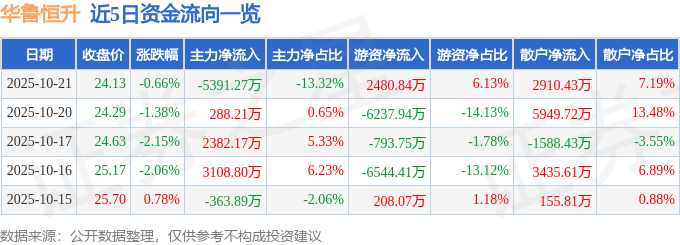 证券之星消息,截至2025年10月21日收盘,华鲁恒升(600426)报收于24.13元,下跌0.66%,换手率0.79%,成交量16.76万手,成交额4.05亿元。