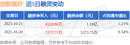 证券之星消息,10月21日,创新医疗(002173)融资买入1.29亿元,融资偿还6368.32万元,融资净买入6524.86万元,融资余额1.19亿元。